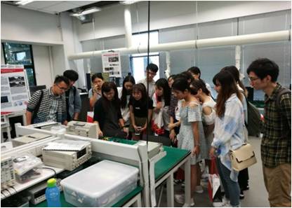 访学交流团还在裴教授的带领下参观了南洋理工大学的四个主要实验室。在射频与电子实验室中, 团队成员们在实验室老师的带领下参观了电线电路板的展示,还近距离走近了天线屏蔽演示实验室,深入了解了天线的工作原理;在交通系统实验室中,在实验室老师的详细介绍下,团队成员们也详细了解交通系统的仿真过程;在无人驾驶实验室中,许多学生第一次真正“触摸”到了无人驾驶汽车;在嵌入式系统实验室中,团队成员们接触到了自己学过的单片机领域的知识,也被单片机所能做到的强大应用所震撼。