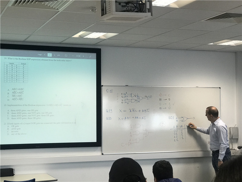 团队成员们还在利物浦约翰摩尔斯大学听取了两节课,深深地体会到了利物浦约翰摩尔斯大学教室的学习氛围与教师耐心的讲课风格。第一节课由Obrad Dordevic老师讲授的数字与模拟电子线路的习题课,团队成员们全神贯注地与来自不同国家的学生一同汲取知识。第二节课团队成员们听取了Hugh Smallman教授讲解的生物医学工程讲座,教授为大家讲解了DNA、RNA以及蛋白质的结构及功能。在讲解完理论知识后,教授还利用例题由浅入深地介绍了生物医学工程的分支——生物机械工程。讲解过程中,教授与团队成员们经常互动,课堂气氛轻松愉快,团队成员们积极与老师共同探讨问题,学术氛围浓重。