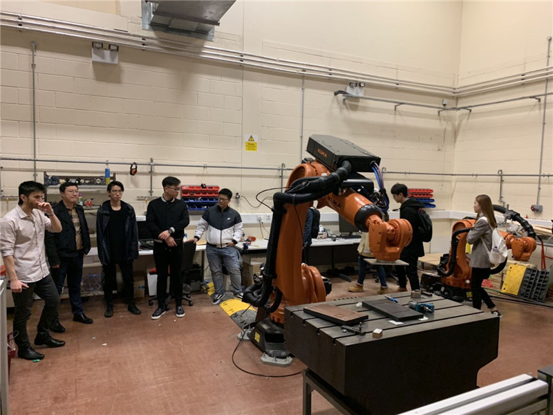 接下来团队成员们前往曼彻斯特,在两所学校进行交流访学。在索尔福德大学访问期间,来自索尔福德大学自动系统和先进机器人研究中心的老师Theo Theodoridis为大家介绍了四种机器人,其分别是进行铣槽工作的库卡机械臂、基于气动肌肉的仿生机械臂、基于人工智能的ROS机器人以及帮助行动不便的老人的助老机器人。老师介绍道每个机器人各司其职,根据需求集成不同的产品,这样将大大促进机器人的产业化发展。最后,老师还为我们介绍了一间智能家居房间,这间“神奇”的房间看着普通,实际处处都是智能机械化!团队成员们简单了解到了仿生机械的研究原理,并且被其应用深深震撼。