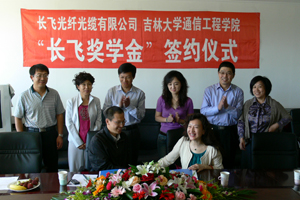 在吉大南湖校区隆重举行第三期“长飞奖学金”签约仪式,长飞董事郑慧丽和法律事务主任李璇、海角社区